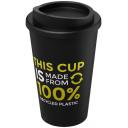 Double-walled tumbler made from recycled plastic, with a twist-on lid. The tumbler is 75% recycled in total, with a recycled mug with black inner layer, and a standard lid. Due to the nature of recycled plastic, there may be small marks or some colour variation. The tumbler has a volume capacity of 350 ml and is fully recyclable. Made in the UK. Packed in home compostable bag. BPA-free. Recycled PP Plastic, PP Plastic.