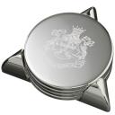 All metal round heavyweight coaster in highly polished silver finish. Clean design with soft rubber black base to protect surfaces.