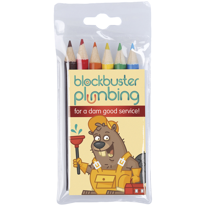 Pack of 6 colouring pencils with a card insert personalised on one side Printed full colour