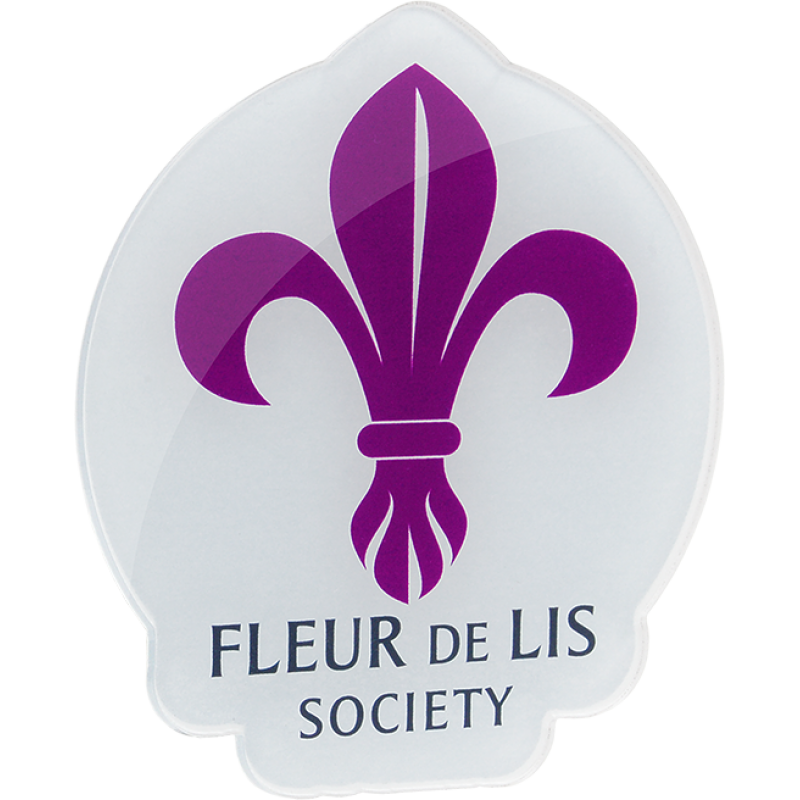 1.5mm thick clear acrylic with felt backing in a choice of red, green, blue or black. Any shape or size up to 90 x 90mm and reverse printed for a gloss finish.